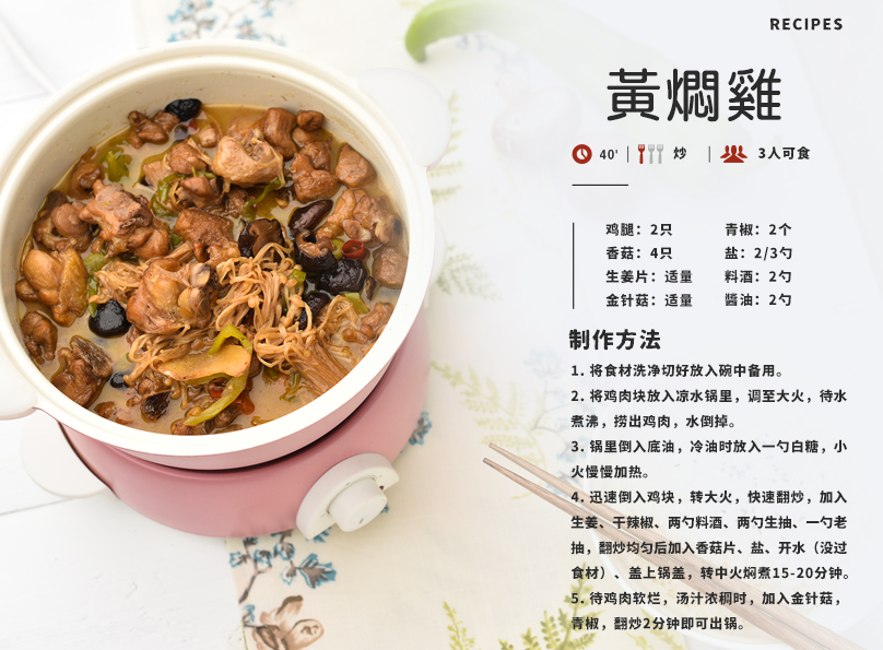 5:待鸡肉软烂,汤计浓稠时,加入金针菇,青椒,翻炒2分钟即可出锅。
